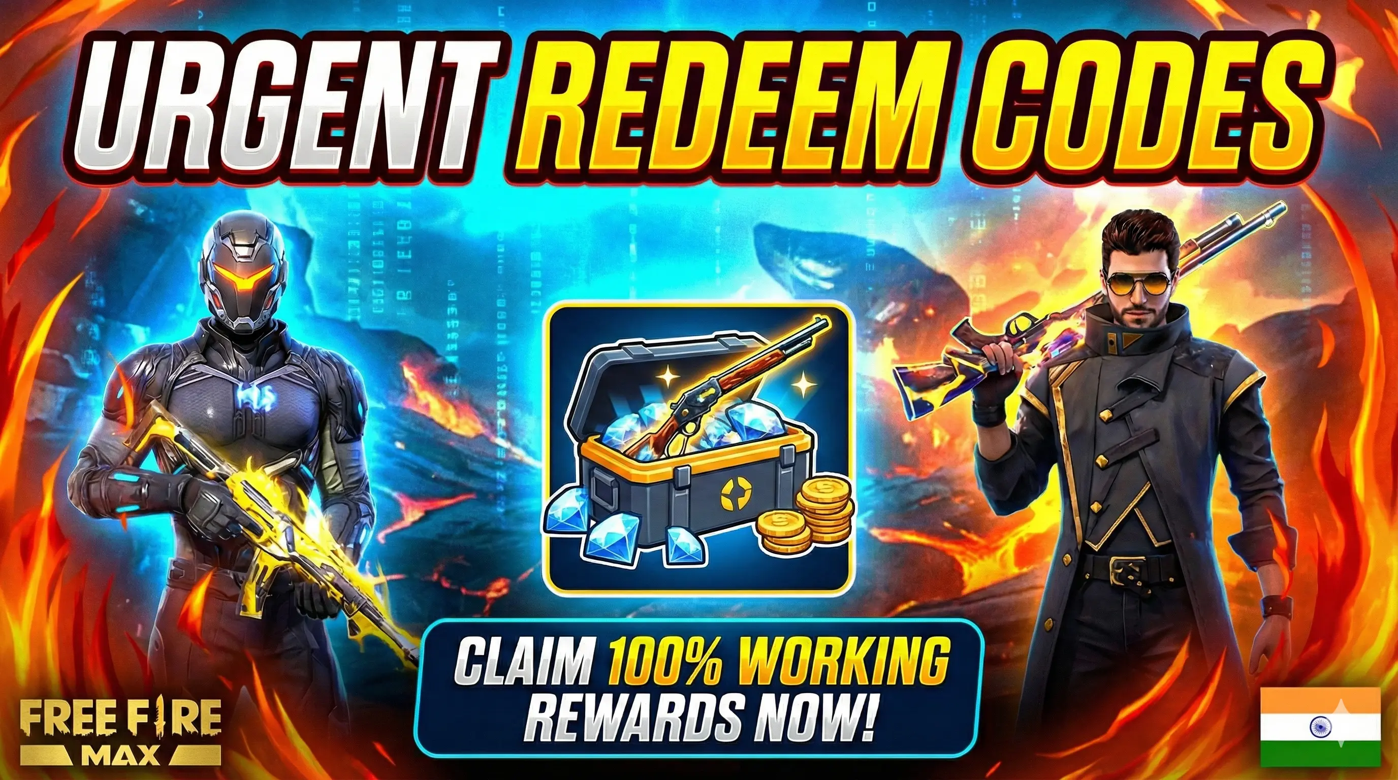 Looking for the latest Free Fire MAX redeem codes? You are at the right place. Garena has released brand-new working codes for today. Players can instantly claim Diamonds, Elite Pass benefits, gun skins, and loot crates.